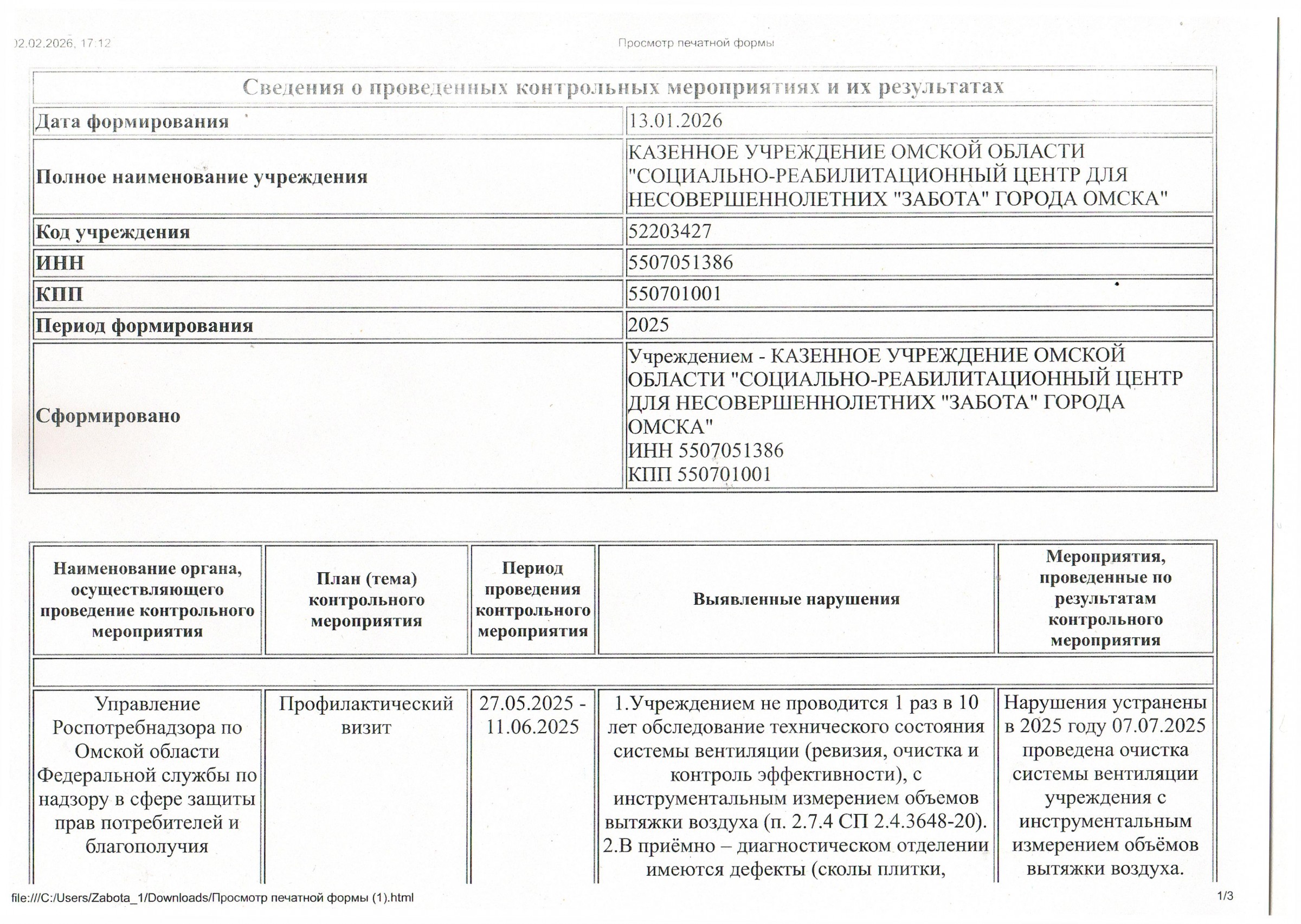 Казенное учреждение Омской области"Социально-реабилитационный центр для несовершеннолетних "Забота" города Омска"