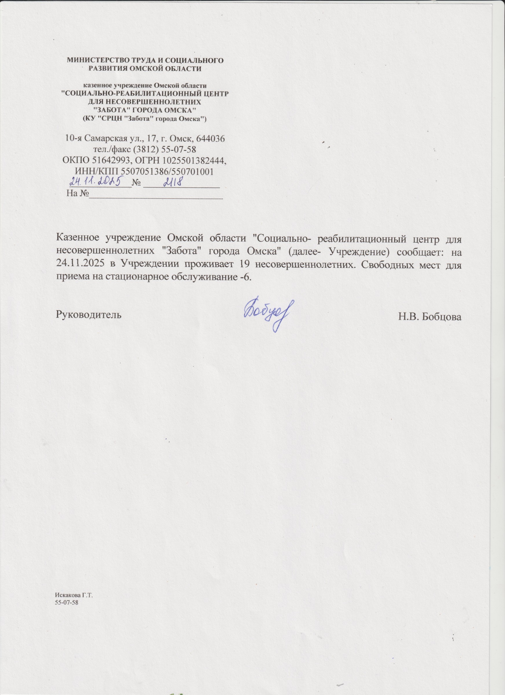 казенное учреждение Омской области"Социально-реабилитационный центр для несовершеннолетних "Забота" города Омска"